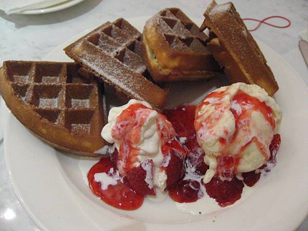 ↑這是我的草莓鬆餅,白色那兩球,左邊是奶油,右邊是香草冰淇淋